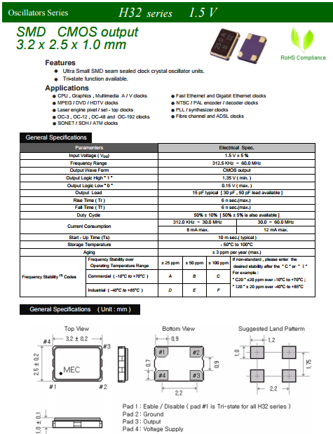 MERCURY晶振,3225貼片晶振,H32石英水晶振蕩子.3225mm體積非常小的SMDcrystal器件,是民用小型無(wú)線數(shù)碼產(chǎn)品的最佳選擇,小體積的晶振被廣泛應(yīng)用到,手機(jī)藍(lán)牙,GPS定位系統(tǒng),無(wú)線通訊集,高精度和高頻率的穩(wěn)定性能,非常好的減少電磁干擾的影響,是民用無(wú)線數(shù)碼產(chǎn)品最好的選擇,符合RoHS/無(wú)鉛.
