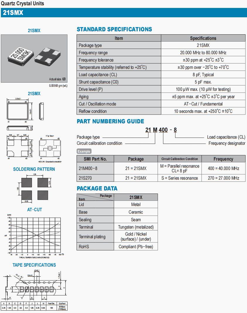 | 老化 | ±5 ppm max. at +25゜C ±3゜C per year |