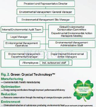 Aiming to reduce our environmental impact, we have identied detailed challenges and solutions as part of a medium-term plan. Under this, we are working to prevent global warming, reduce waste, manage chemical substances, and prevent air and water pollution. In order to satisfy society’s demands regarding environmental protection, including, among other things, reducing carbon dioxide emissions, we have introduced Green Crystal Technology™ (see Fig. 2) as part of our unique crystal device development concept. To that end, we use state-of-the-art technology as a means of promoting the development of smaller, lighter, more energy-efcient products and pursuing more comprehensive energy efciency and environmental performance over each product’s lifecycle.