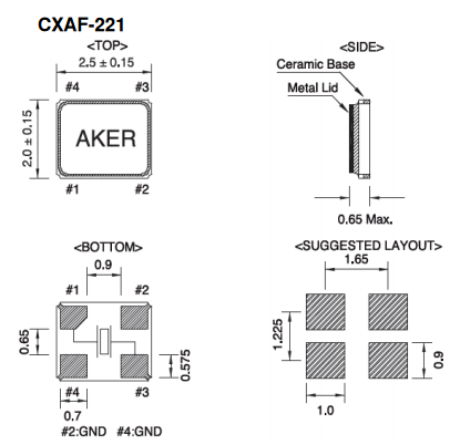 AKER晶振,貼片晶振,CXAF-221晶振,安碁科技成立于西元1990年,主要從事石英元件產品的研發(fā)、制造及銷售.擁有深厚的研發(fā)技術底蘊,為晶體振蕩器之專業(yè)制造公司.深耕臺灣、布局全球.在美國與中國大陸均設有據點,提供客戶最及時的服務,朝客戶導向目標邁進.科技不斷的進步,安碁科技亦不斷提升技術服務.透過與客戶緊密的互動,了解客戶需求,提供客戶全方位的技術支援─TotalSolution;貫徹安碁誠信為首、專業(yè)化客戶服務及品質優(yōu)先的理念.